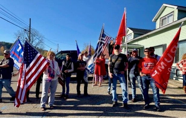 On Sunday, a day after US television networks announced Biden was the winner, nearly 30 Trump supporters gathered outside Jones Diner wearing red "Make America Great Again" hats and waving giant blue "Trump-Pence" flags.