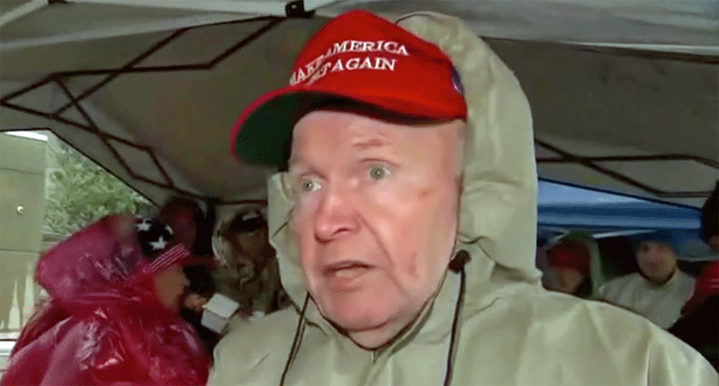Supporter of President Donald Trump wearing a "Make America Great Again" hat at a rally in Charlottesville, North Carolina (screengrab).