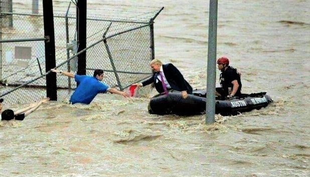 Trump supporters are sharing a fake photo of him personally rescuing hurricane victims