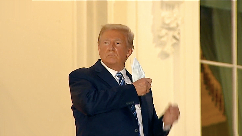 Donald Trump rips off mask following a return to White House from hospitalization for COVID-19 (Photo: screen capture)