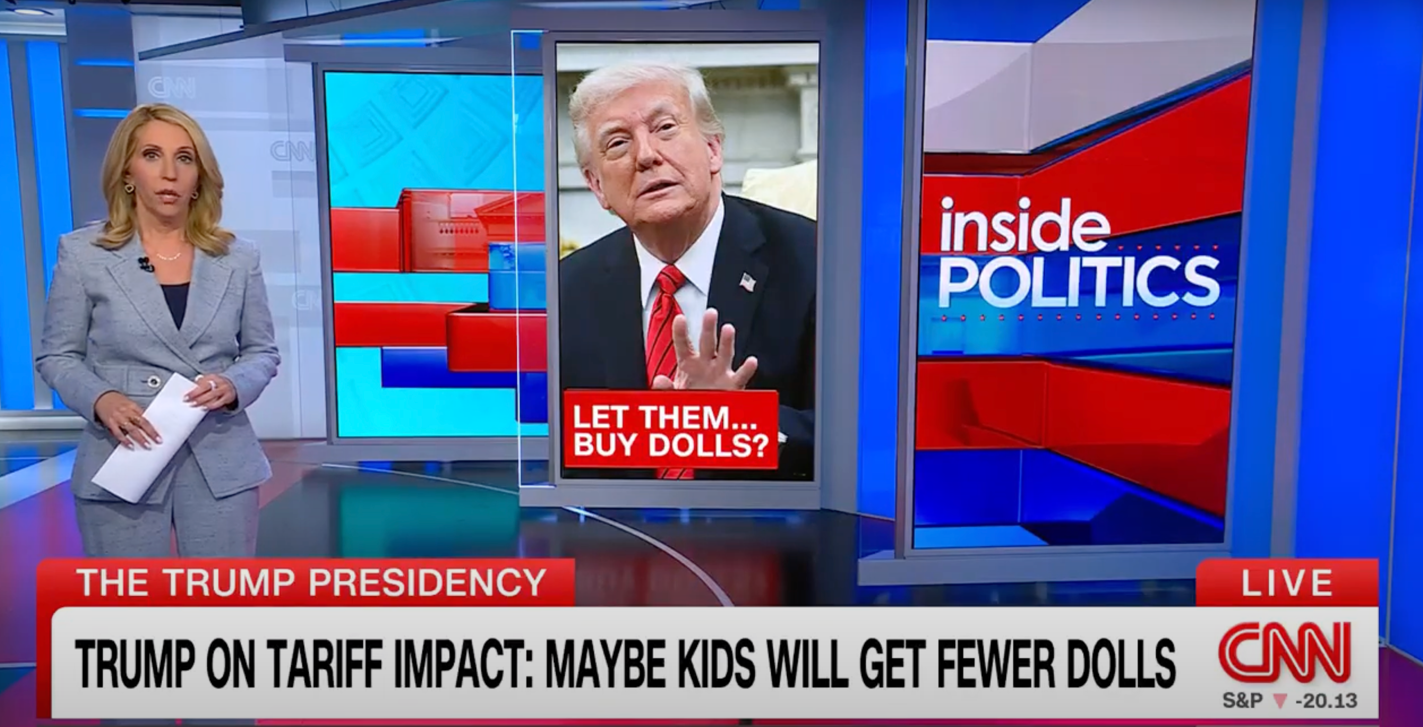"I just want people to understand why this is so much of a thing," Bash said. "And that is because 80% of the toys sold in America — 80% — are manufactured in China, where the biggest — biggest percentage of tariffs — have been leveraged by the president."
