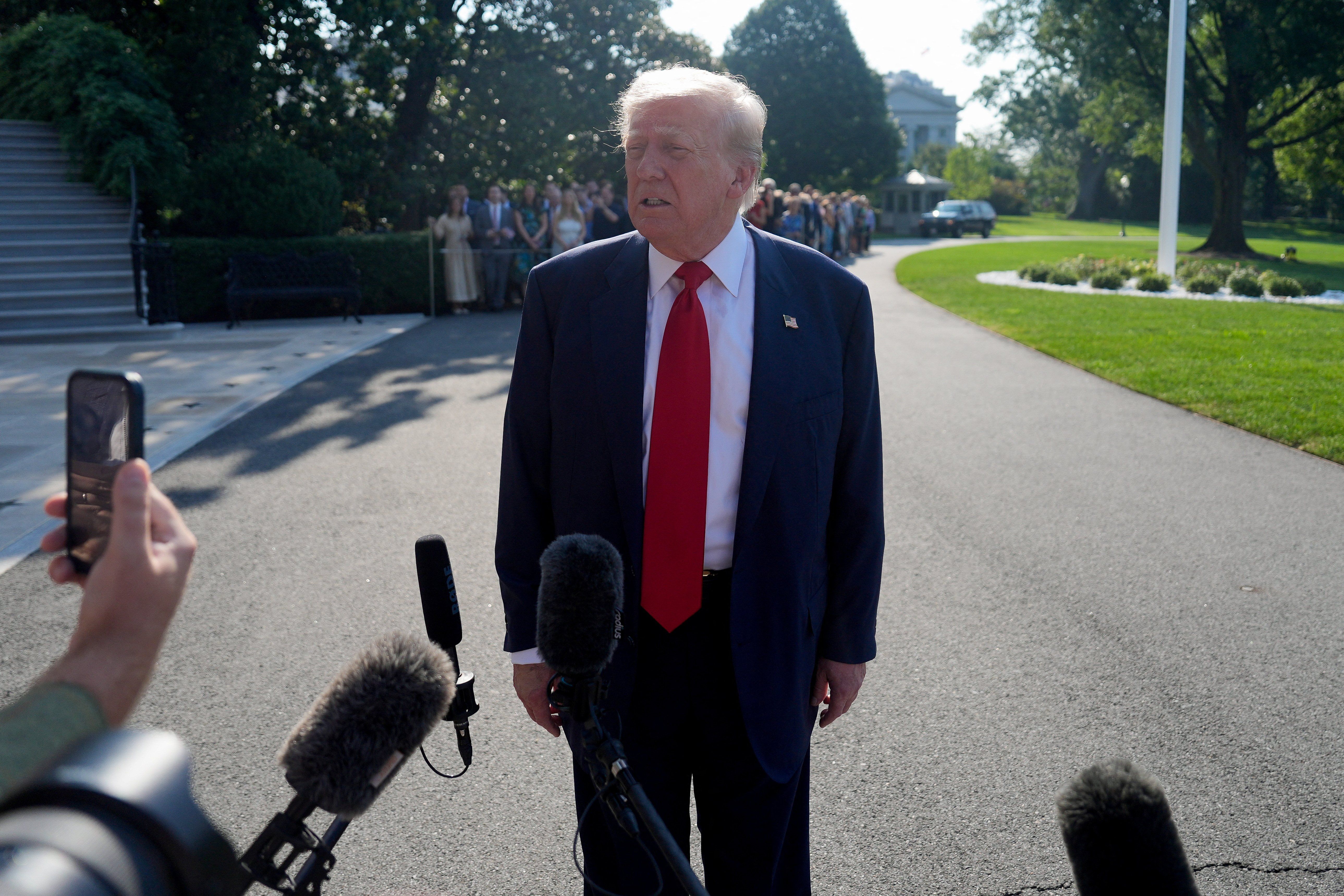 “We have so much money coming in,” from the collection of tariffs, Trump told reporters on Friday, “we’re thinking about a little rebate, but the big thing we want to do is pay down debt, but we’re thinking about a rebate.”