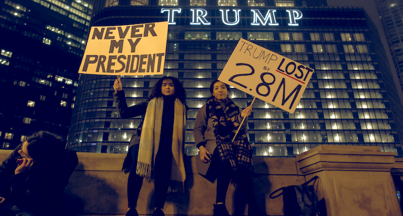 January 20th anti-Trump protest near Trump Tower Chicago following Trump's inauguration (Alek S./ Creative Commons)