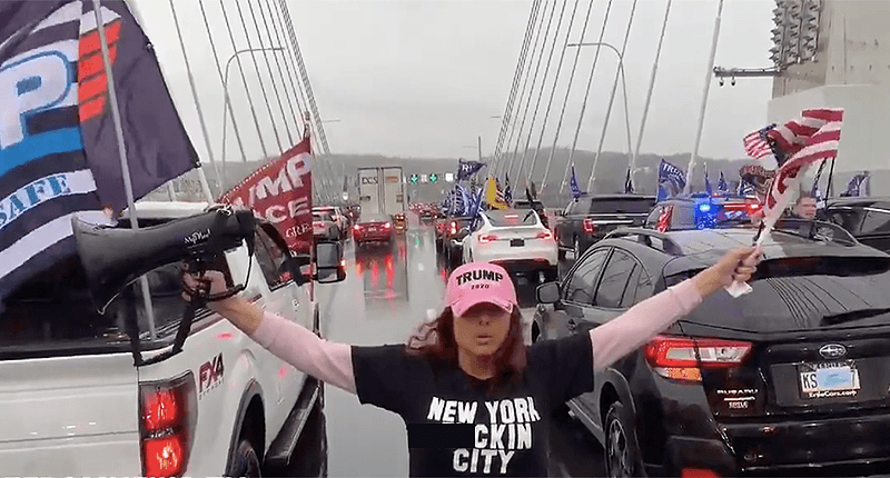 The caravan grew larger in Westchester County — where the Trumpists again blocked traffic while crossing the Governor Mario Cuomo Bridge.