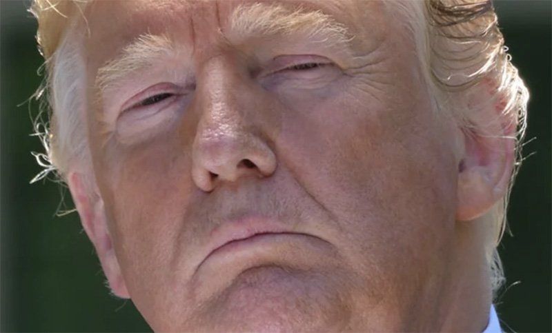 President Donald Trump pauses with a serious face during a press conference in the Rose Garden. (Borka Kiss / Shutterstock.com)