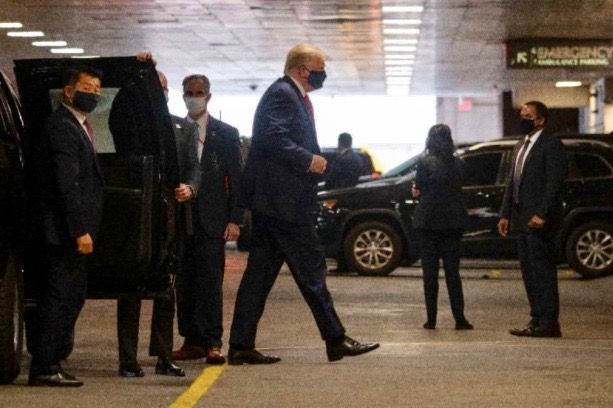 The US leader, who was wearing a face mask upon arriving at New York-Presbyterian Hospital, entered through a back door and stayed about 45 minutes, according to an AFP reporter covering the trip.