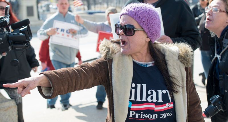 Trump supporter yells at anti-Trump protesters in Minnesota. (Fibonacci Blue/Flickr)