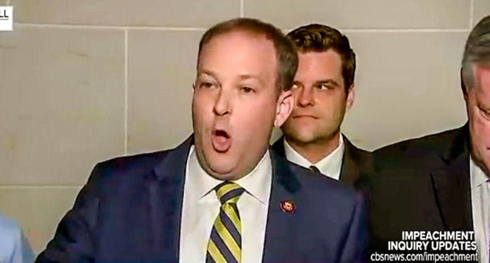 Rep. Lee Zeldin of Long Island came to Congress in 2015 as a standard-issue law and order Republican New Yorker. But he became one of Trump's staunchest defenders from the moment he took office and stuck with him through thick and thin. He was a designated point man during the first impeachment, thrilling the president by calling the process a "charade" and a "clown show" and proudly becoming the congressman who spoke more in the impeachment depositions than any other Republican, at least 550 times according to NBC: