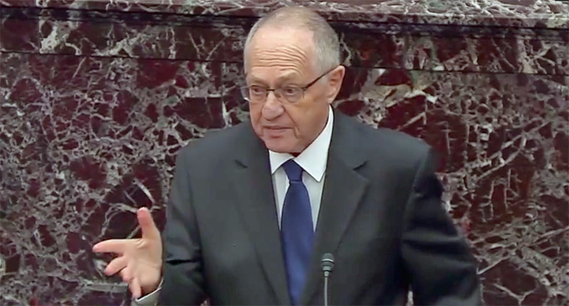Alan Dershowitz arguing in Trump’s impeachment hearing (screengrab)
