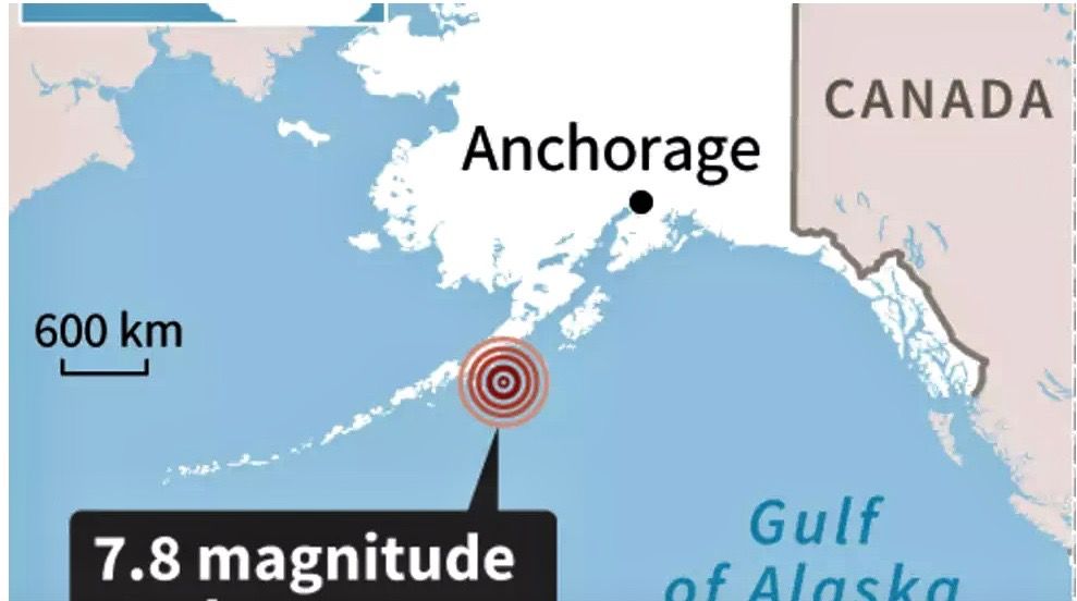 A 7.8-magnitude earthquake struck off the Alaskan peninsula, triggering a tsunami warning for areas within 200 miles (300 kilometers) of the epicenter.