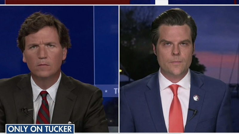 "I'm not the only person on screen right now that has been falsely accused of a terrible sex act," said Gaetz, possibly forgetting about sexual misconduct allegations against Tucker Carlson.