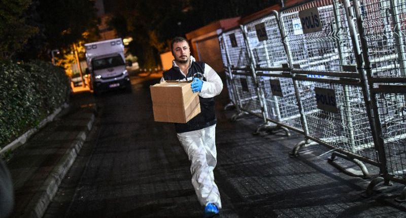 Turkish forensic police at the Saudi Arabian consulate in Istanbul (AFP Photo/Ozan KOSE)