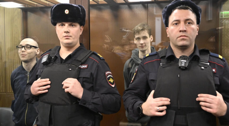 A Moscow court on Thursday sentenced two men to long prison terms for reading poems against the assault on Ukraine.