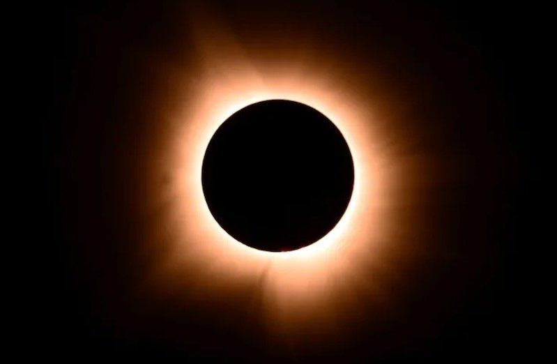 Onlookers watched in awe as the Moon obscured the Sun, allowing the star's corona to be seen with the naked eye.