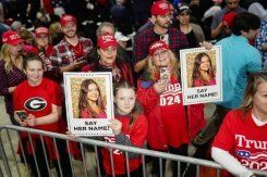Supporters of President-elect Donald Trump brandish images of Laken Riley at a 2024 campaign rally in Rome, Georgia. (AFP)