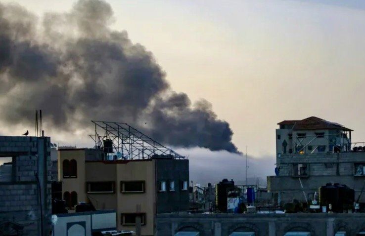 Smoke rises above buildings at sunrise in the aftermath of Israeli bombardment in Rafah in the southern Gaza Strip (AFP)