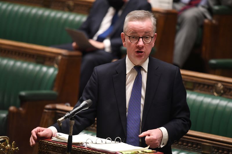 LONDON (Reuters) - Britain is looking at whether it can use properties owned by sanctioned individuals in the country for humanitarian purposes, housing minister Michael Gove said on Sunday. "I want to explore an option which would allow us to use the homes and properties of sanctioned individuals for as long as they are sanctioned for humanitarian and other purposes," Gove told BBC Television, when asked if the homes of sanctioned oligarchs could be used to house Ukrainian refugees. "There is quite a high legal bar to cross and we're not talking about permanent confiscation but we are saying,...
