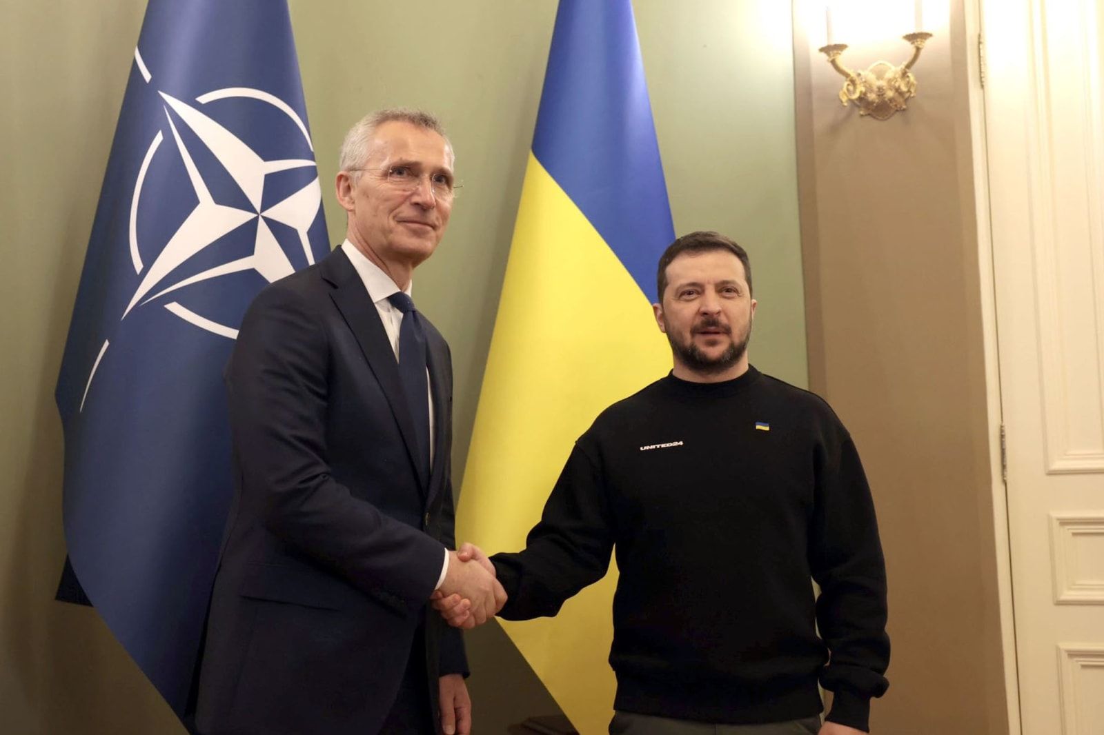 Ukranina President Volodymyr Zelensky (R) meets with NATO Secretary General Jens Stoltenberg. Kiev has been pushing for Ukraine to join NATO for months. Ukrainian President Volodymyr Zelensky accused NATO allies of being "absurd" for the uncertainty surrounding his country's relationship with the alliance as a summit gets under way in Vilnius. -/NATO/dpa