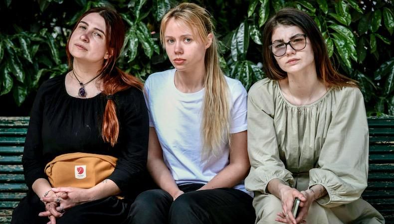 But while their partners, all fighters in Ukraine's Azov regiment, make a last stand at Azovstal, Olha Andrianovna, Hanna Naumenko and Kateryna Prokopenko are engaged in their own personal battle -- to get the West to intervene to save them.
