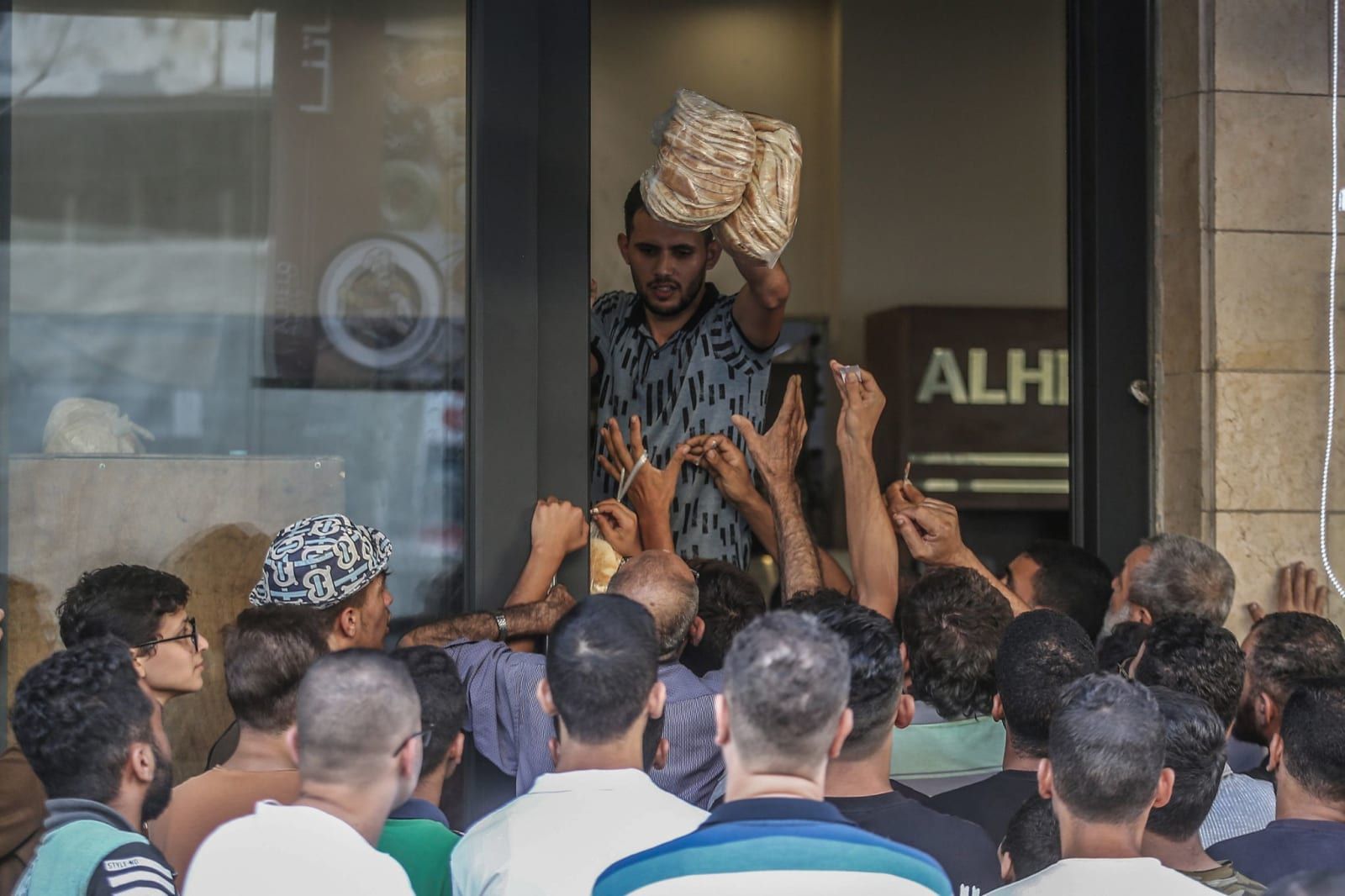 Palestinians stand in queues in front of bakeries for long hours to buy bread. Mohammed Talatene/dpa