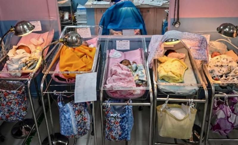 Newborn babies seen inside their cribs at a hospital in the city of Santa Rosa, Philippines (AFP)