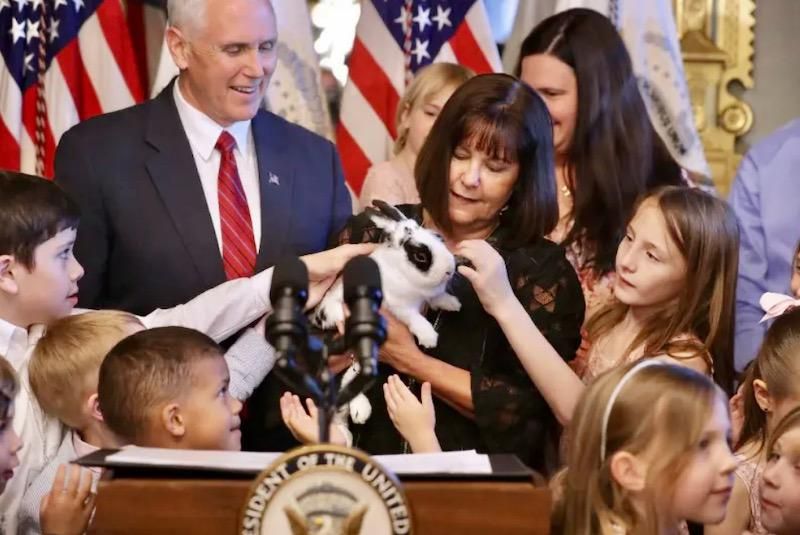 The Pence family announced over the weekend that Marlon Bundo -- their pet rabbit seen here in May 2017, when Mike Pence was US vice president -- had died