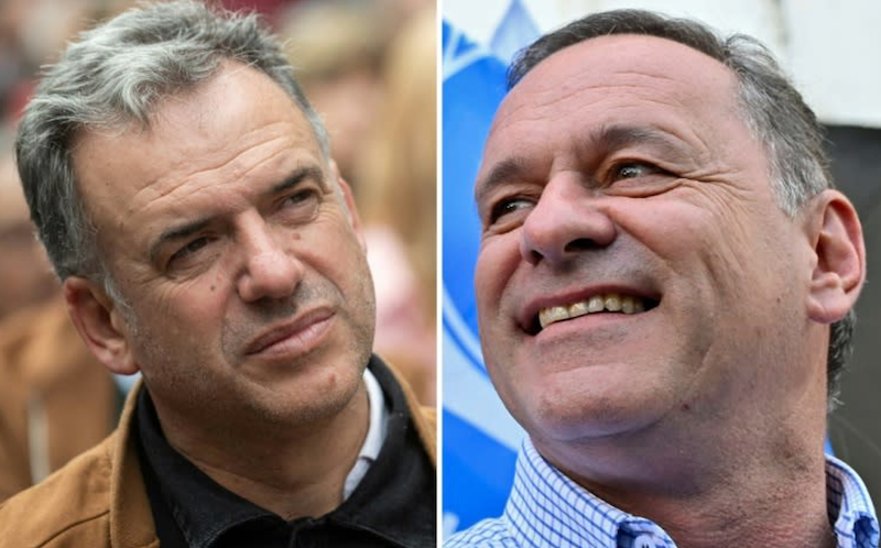 Frente Amplio candidate Yamandu Orsi (L) and rival Alvaro Delgado (SANTIAGO MAZZAROVICH/AFP)