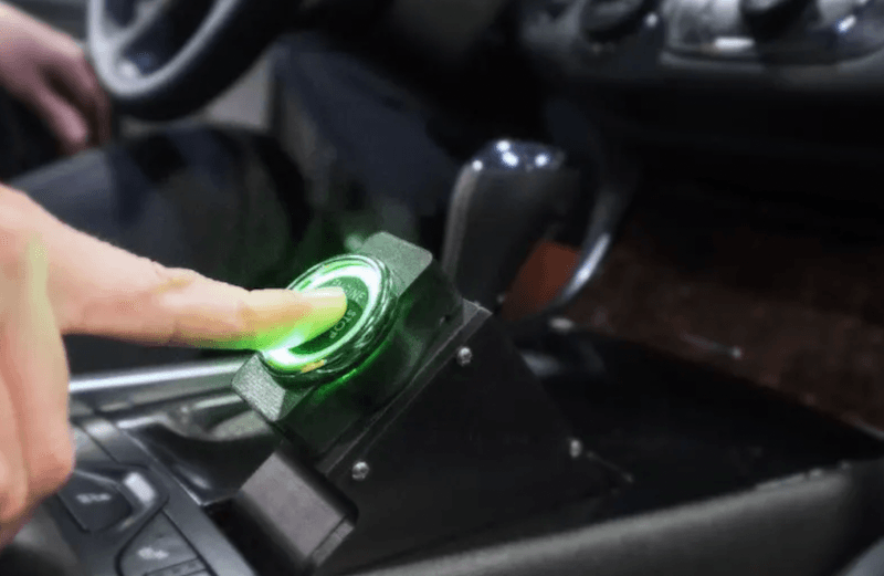 Or the driver pushes the ignition button, which measures blood alcohol levels under the skin's surface by shining an infrared-light through the person's fingertip.