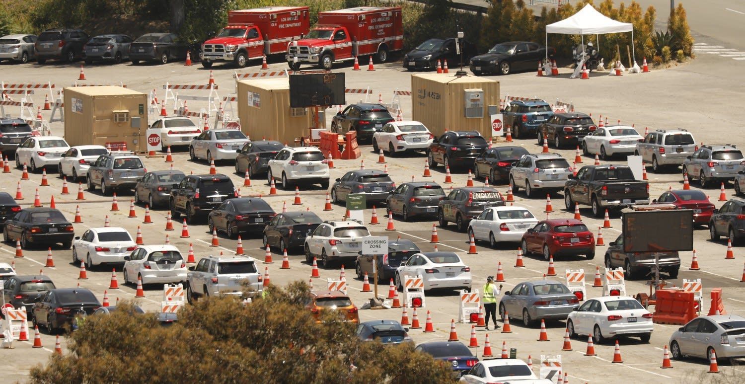 LOS ANGELES, CA- JULY 08: Coronavirus testing on Wednesday July 8, 2020 at Dodgers Stadium. - Al Seib/Los Angeles Times/TNS