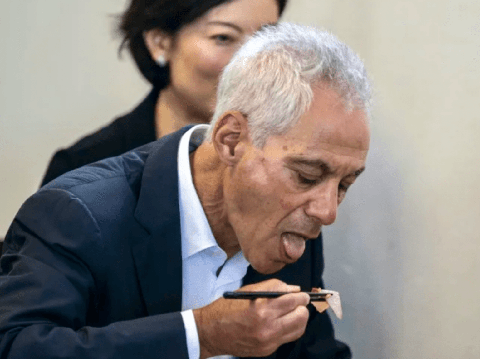 Emanuel, 63, ate a plateful of raw slices of flounder, tuna and bass at a local restaurant before buying more fish and locally grown peaches from a supermarket.