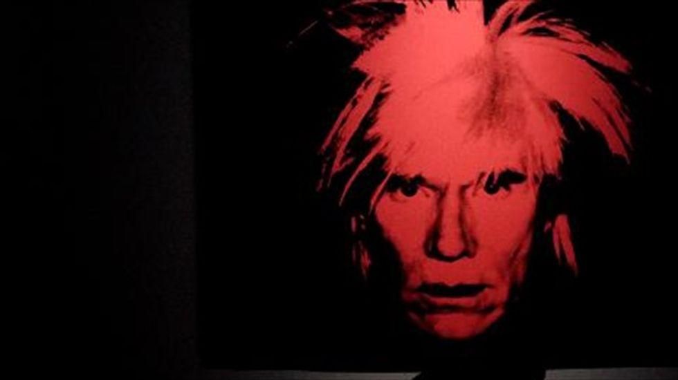 A man sits in front of a self-portrait by US artist Andy Warhol as part of the exhibition 'Warhol' on April 17, 2014 in Rome [AFP]