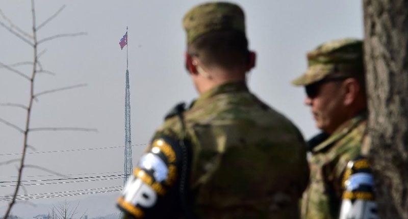 US soldiers stand guard at Taesungdong Elementary School in South Korea on February 4, 2016 (AFP Photo/Jung Yeon-Je)