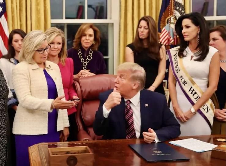 Former President Donald Trump, pictured with vocal Republican critic Liz Cheney at the White House in 2019, tried to overturn his defeat to Democrat Joe Biden (AFP)