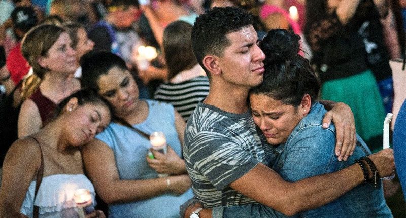 People embrace during a vigil in Orlando for the mass shooting victims at the Pulse nightclub (AFP Photo/Brendan Smialowski)