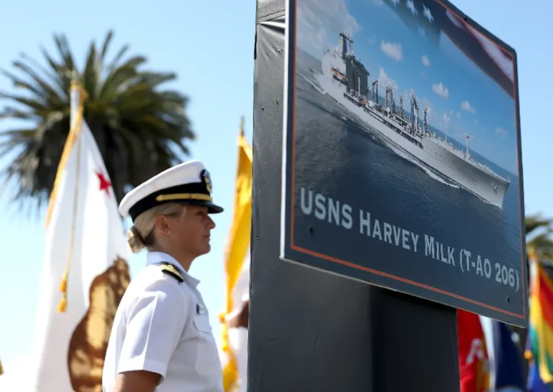 The USNS Harvey Milk honors a former navy diver who served at a time there was a ban on homosexuality in the armed forces, and who was later shot dead in San Francisco, months after winning public office.