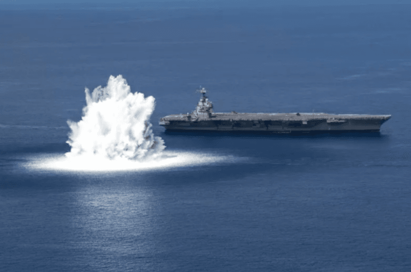 The US Navy has started a series of tests on its newest and most advanced aircraft carrier by detonating powerful explosions to determine whether the ship is ready for war.