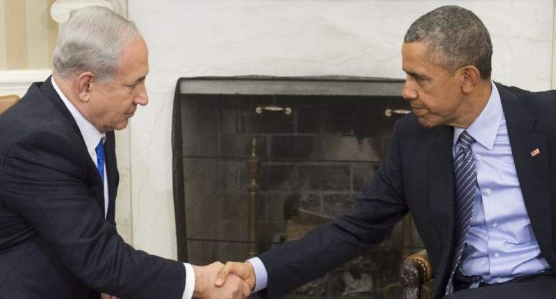 President Barack Obama and Israeli Prime Minister Benjamin Netanyahu shake hands during a Nov. 9, 2015 meeting. (AFP/Saul Loeb)