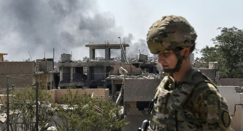 A US soldier advises Iraqi forces in the fight against the Islamic State group in the city of Mosul in 2017. (AFP/File / MOHAMED EL-SHAHED)