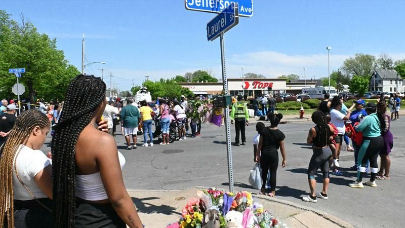 Mourners gather near a Tops Grocery store in Buffalo, New York, on May 15, 2022. (Usman KHAN AFP)