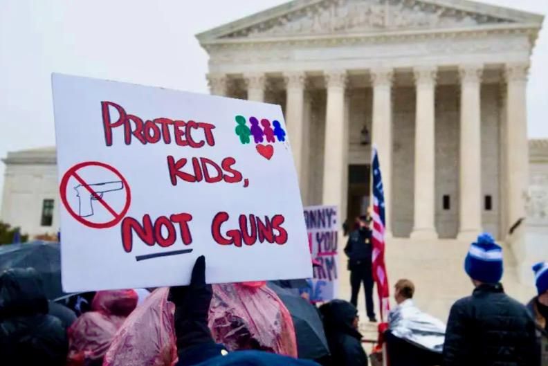 Gun control supporters hold a protest rally outside the US Supreme Court