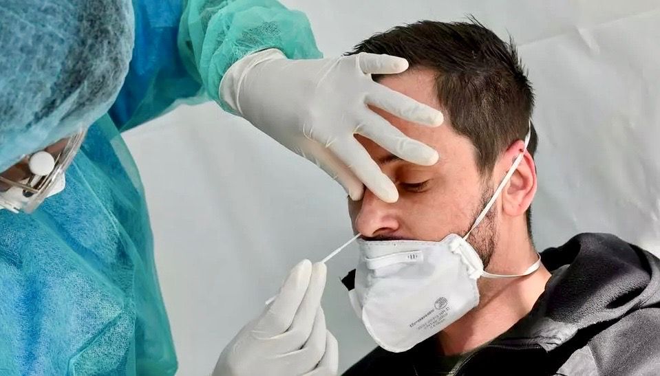 File photo of a medic conducting a Covid-19 test at a medical centre Bertrand GUAY AFP