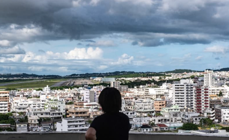 A person looks out at the US Marine Corps Air Station Futenma in Okinawa in October 2022