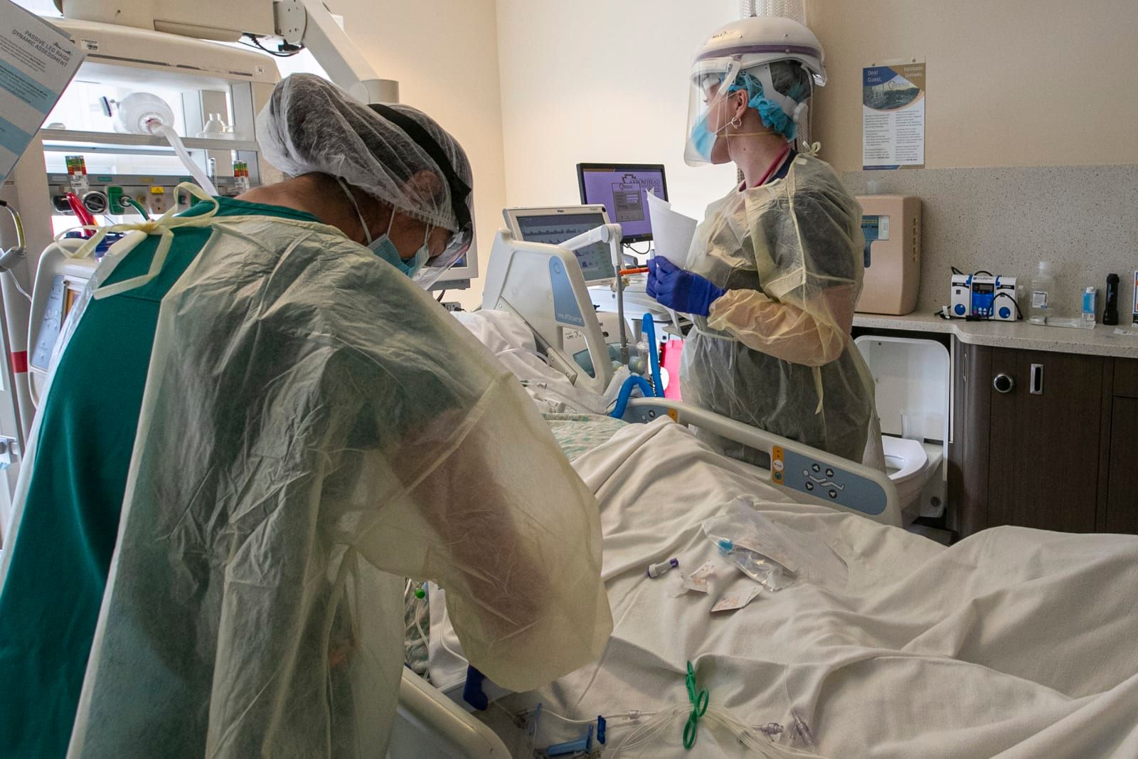 A nurse and respiratory therapist attend to a coronavirus patient in the Intensive Care Unit of Arrowhead Regional Medical Center on Wednesday, Dec. 23, 2020, in Colton, California. - Irfan Khan/Los Angeles Times/TNS