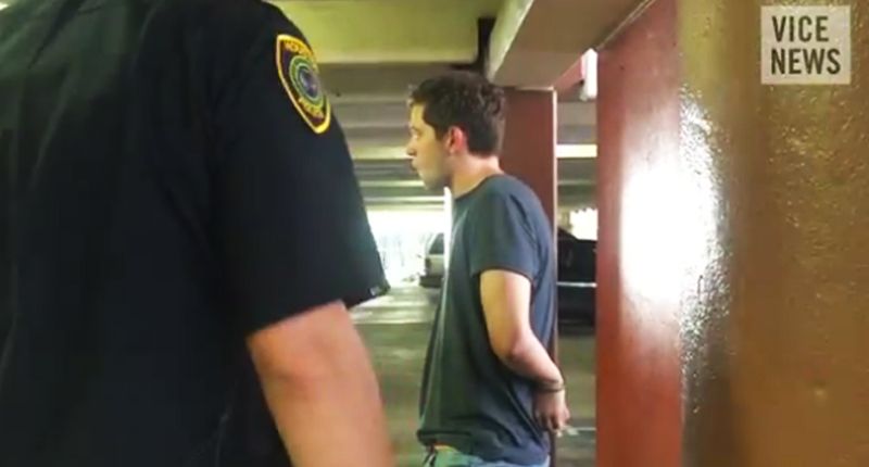 Vice reporter Alex Thompson being taken into custody by Houston police at Trump event -- (YouTube screengrab)