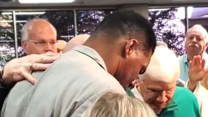 “You give us the grace to face any storm that you allow to happen,” George added in his prayer. “And we thank you that before Herschel was born, you knew him by name, you had ordained his life, you had already anointed him to have gifts and talents that would cause him to excel above all others. Your hand of favor has rested upon his life all the days of his life. The good days and the dark and bad days, you have been there.”