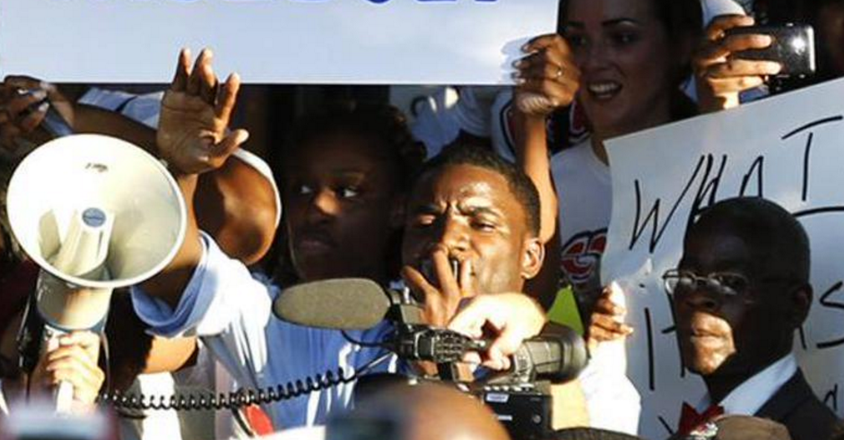 Dominique Alexander, the founder of the Next Generation Action Network , addresses protesters (Twitter photo)