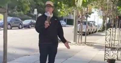 "You're free to express your opinions, but not on people's property," he added. Later in the encounter "Robert" insisted the man, James Juanillo, was performing an illegal act.