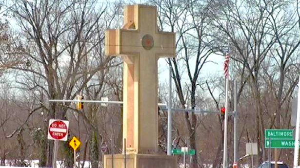 When Fred Edwords first drove by the 40-foot-tall (12 meters) concrete cross that has stood for nearly a century on a busy intersection in suburban Maryland outside the U.S. capital, his first reaction was, “What is that doing there?”
