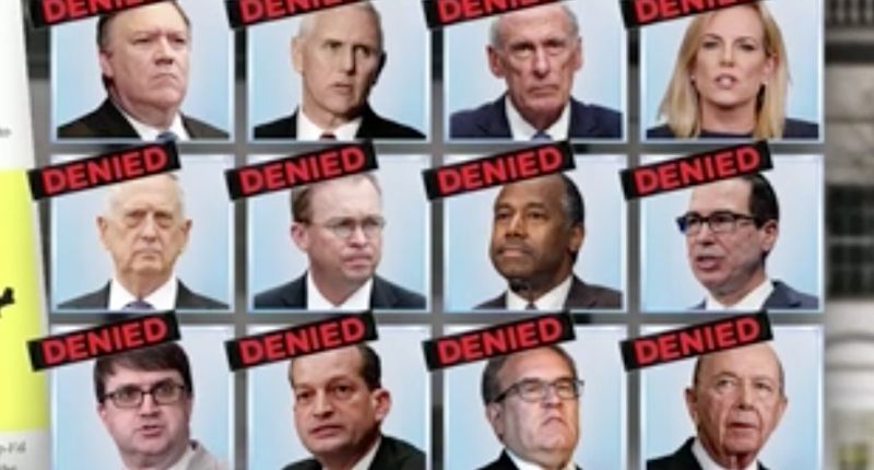 The 12-person list includes Secretary of State Mike Pompeo, Vice President Mike Pence, Homeland Security Secretary Kirstjen Nielsen, Defense Secretary Jim Mattis, Housing and Urban Development Secretary Ben Carson and Treasury Secretary Steve Mnuchin.