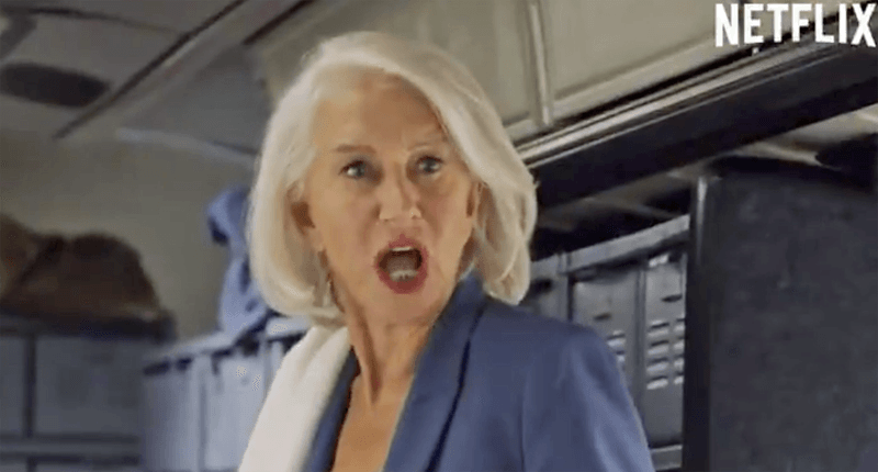 The scene is from Trump impersonator Sarah Cooper's new Netflix special "Everything is Fine." Mirren plays Bush, while Cooper does her widely-praised Trump lip-syncing.